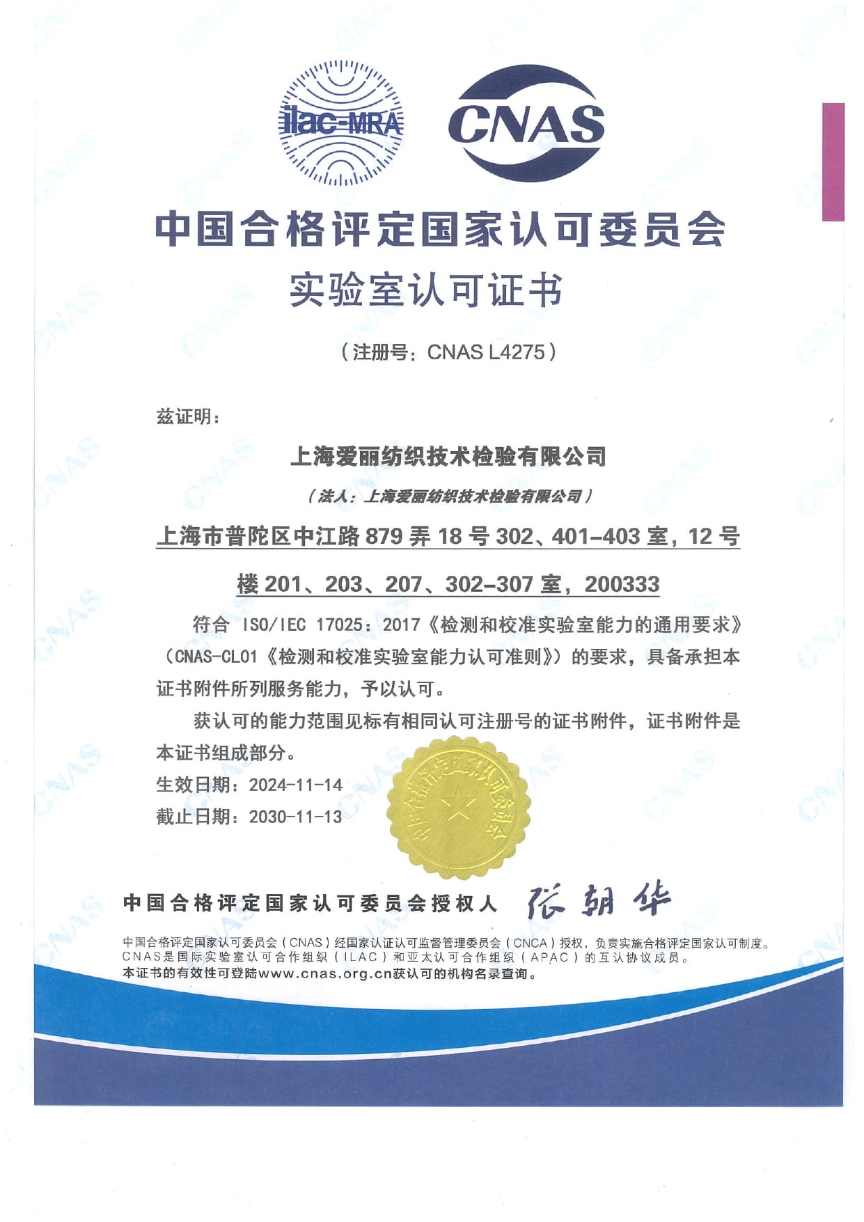 - CMA資質(zhì)認定證書附表(批準日期:2021年9月9日) CMA資質(zhì)認定證書附表(批準日期:2021年11月30日) CMA資質(zhì)認定證書附表(批準日期:2022年10月27日) CNAS認可的檢測能力范圍 CNAS認可的授權(quán)簽字人及領(lǐng)域